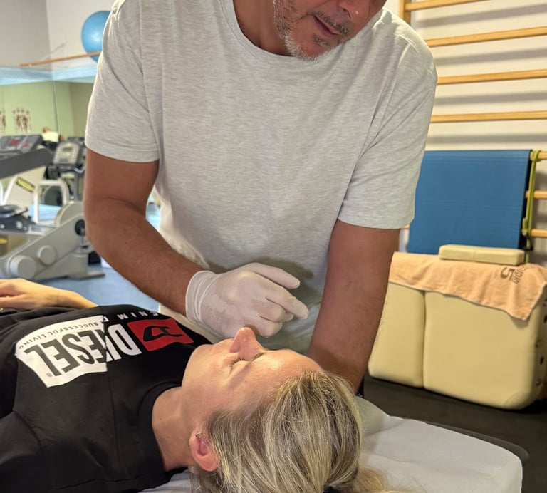 Tecnica specifica che lavora su muscoli e articolazioni della mandibola per ridurre dolore, rigidità e scatti articolari. Indicato in caso di bruxismo, serramento notturno, tensione cervicale e mal di testa correlato.